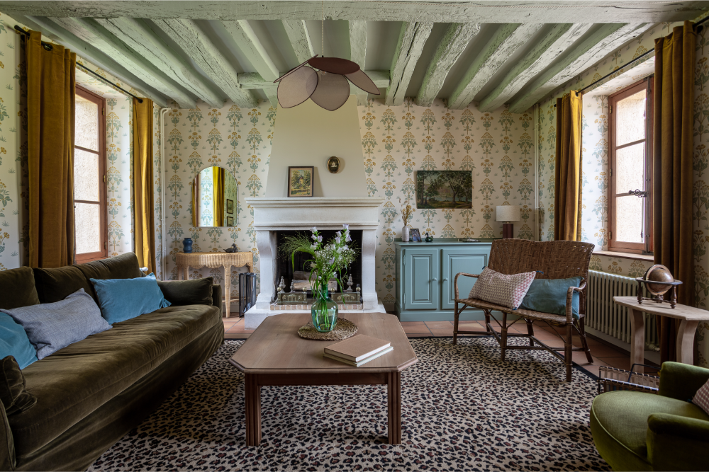 En quelques mois, la maison a été entièrement repensée, avec des inspirations venues de l’univers cottage anglais et de l’abbaye des Vaux-de-Cernay. Les sols, les couleurs et les papiers peints ont été choisis pour apporter authenticité et douceur. Du mobilier chiné a été ajouté pour renforcer l’esprit campagne et donner une vraie identité au lieu.