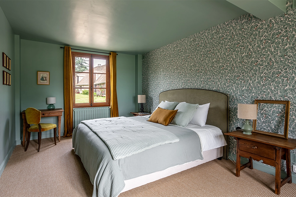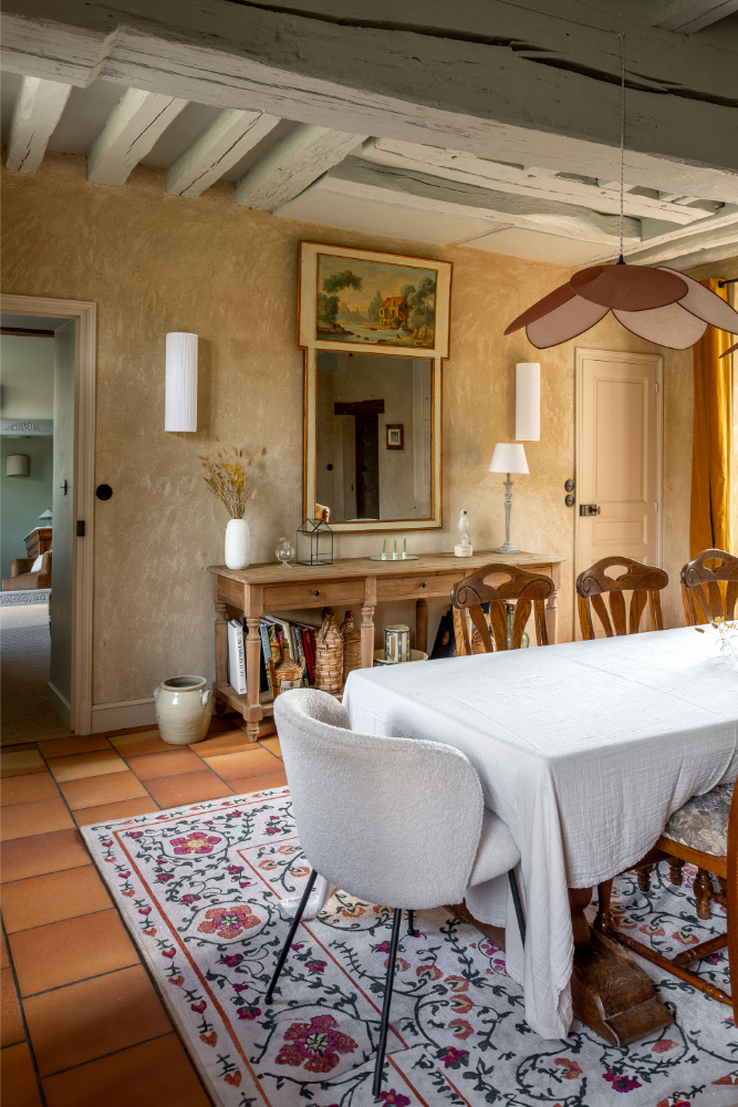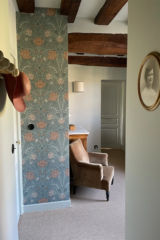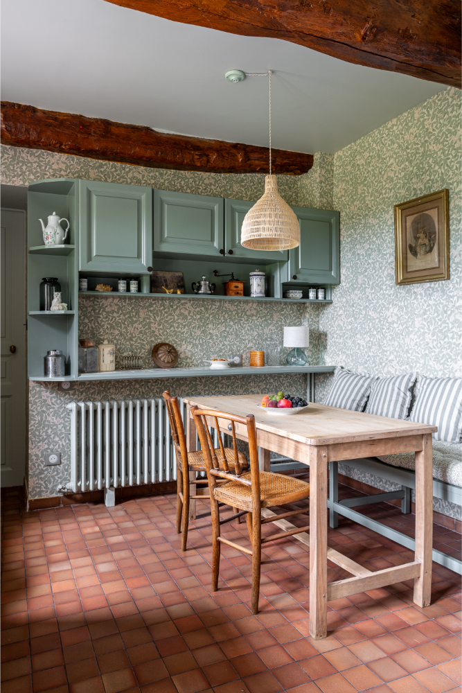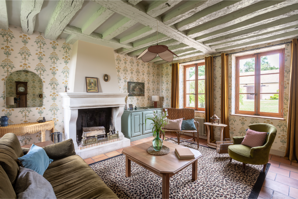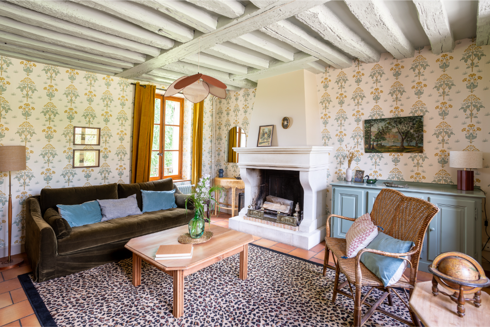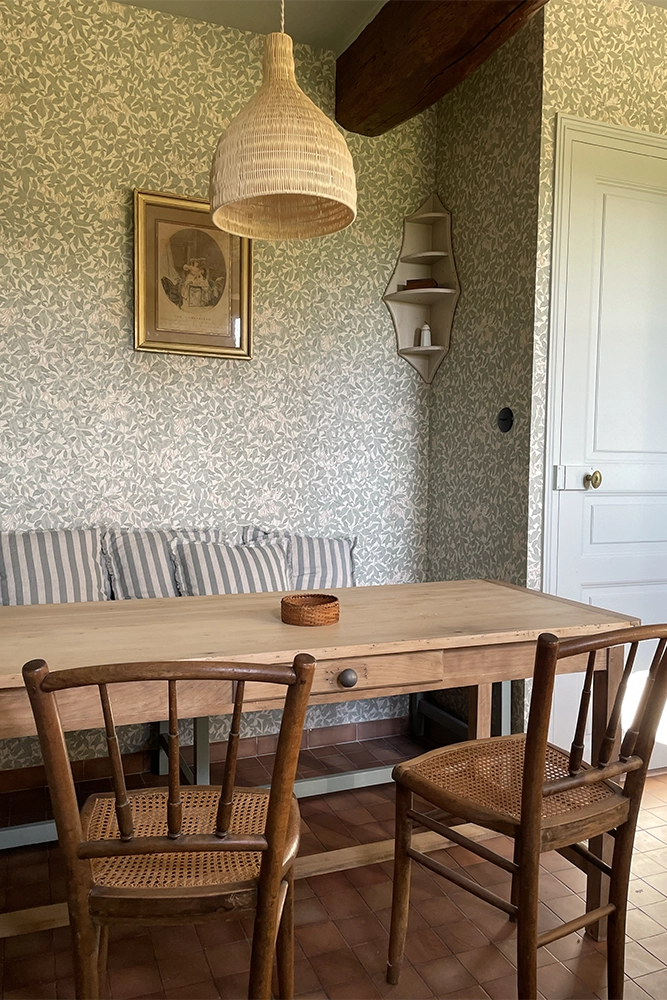 En quelques mois, la maison a été entièrement repensée, avec des inspirations venues de l’univers cottage anglais et de l’abbaye des Vaux-de-Cernay. Les sols, les couleurs et les papiers peints ont été choisis pour apporter authenticité et douceur. Du mobilier chiné a été ajouté pour renforcer l’esprit campagne et donner une vraie identité au lieu.