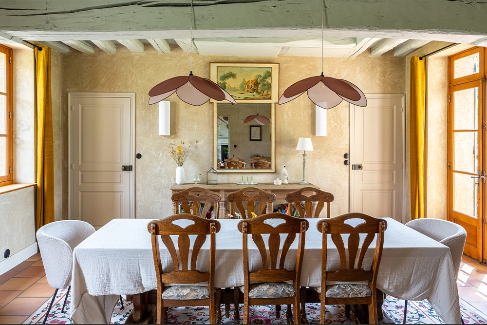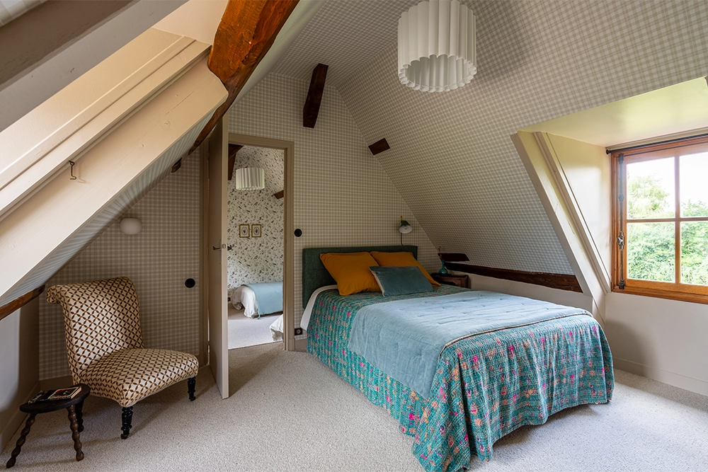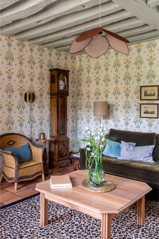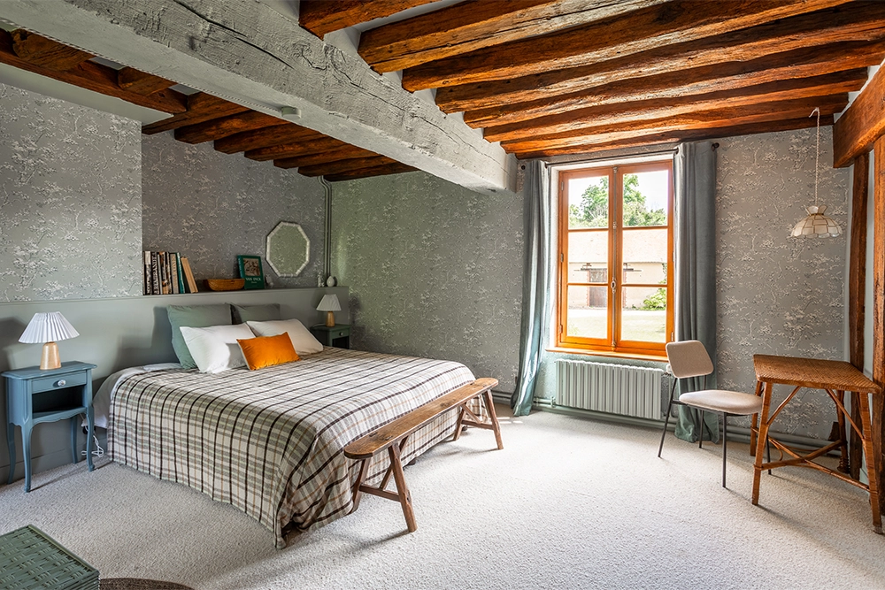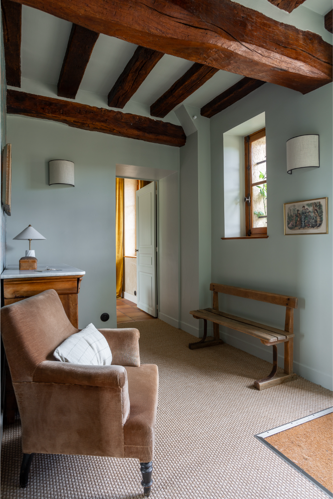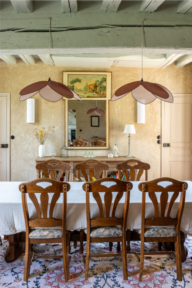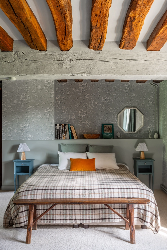 En quelques mois, la maison a été entièrement repensée, avec des inspirations venues de l’univers cottage anglais et de l’abbaye des Vaux-de-Cernay. Les sols, les couleurs et les papiers peints ont été choisis pour apporter authenticité et douceur. Du mobilier chiné a été ajouté pour renforcer l’esprit campagne et donner une vraie identité au lieu.