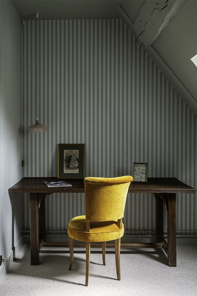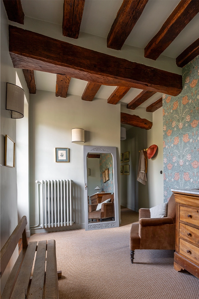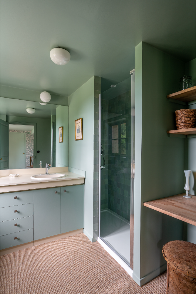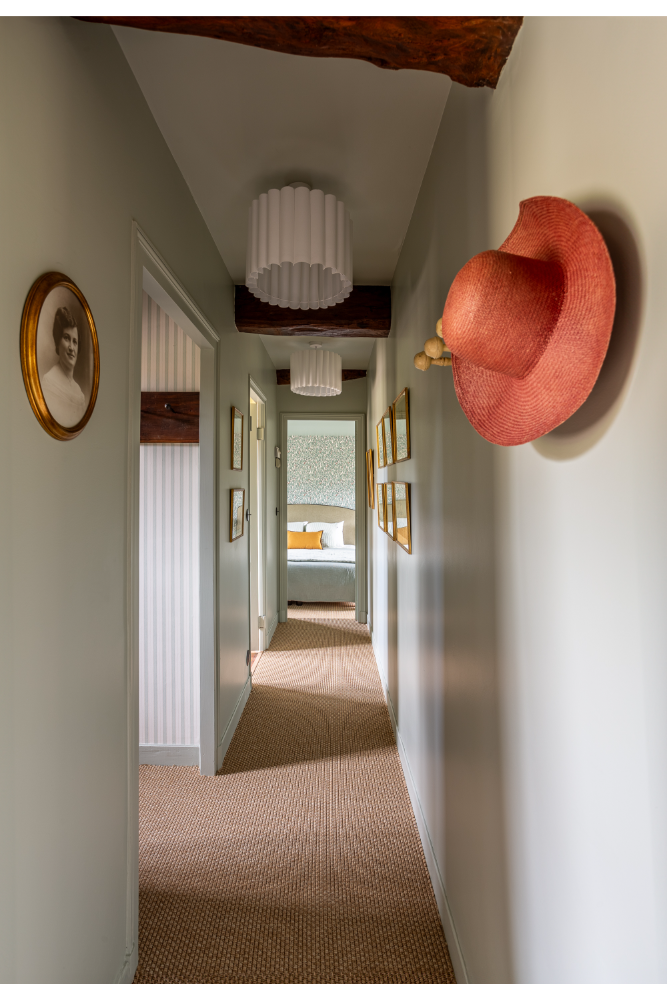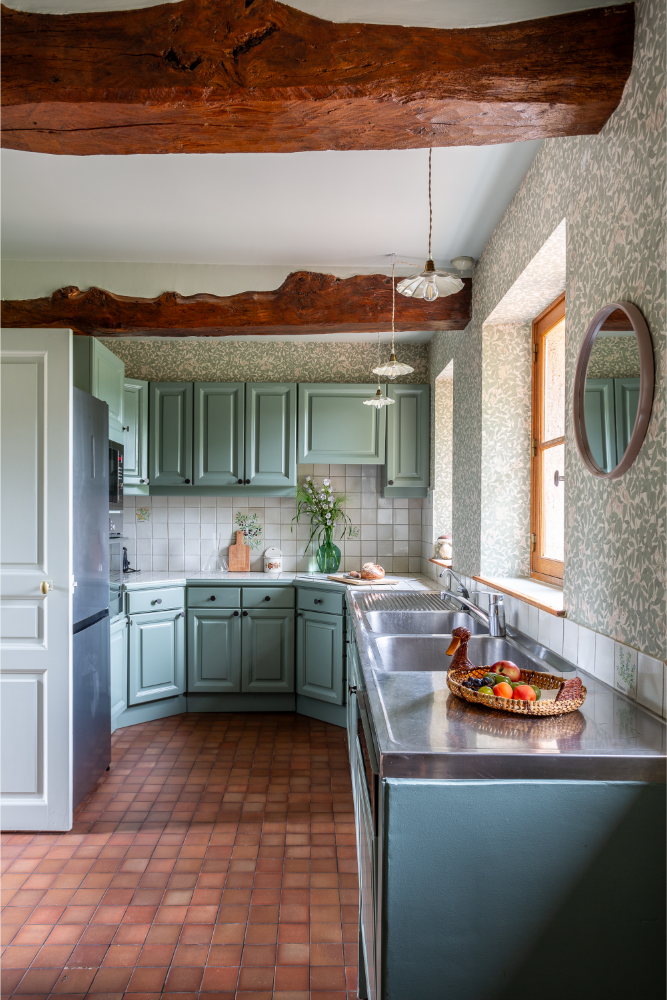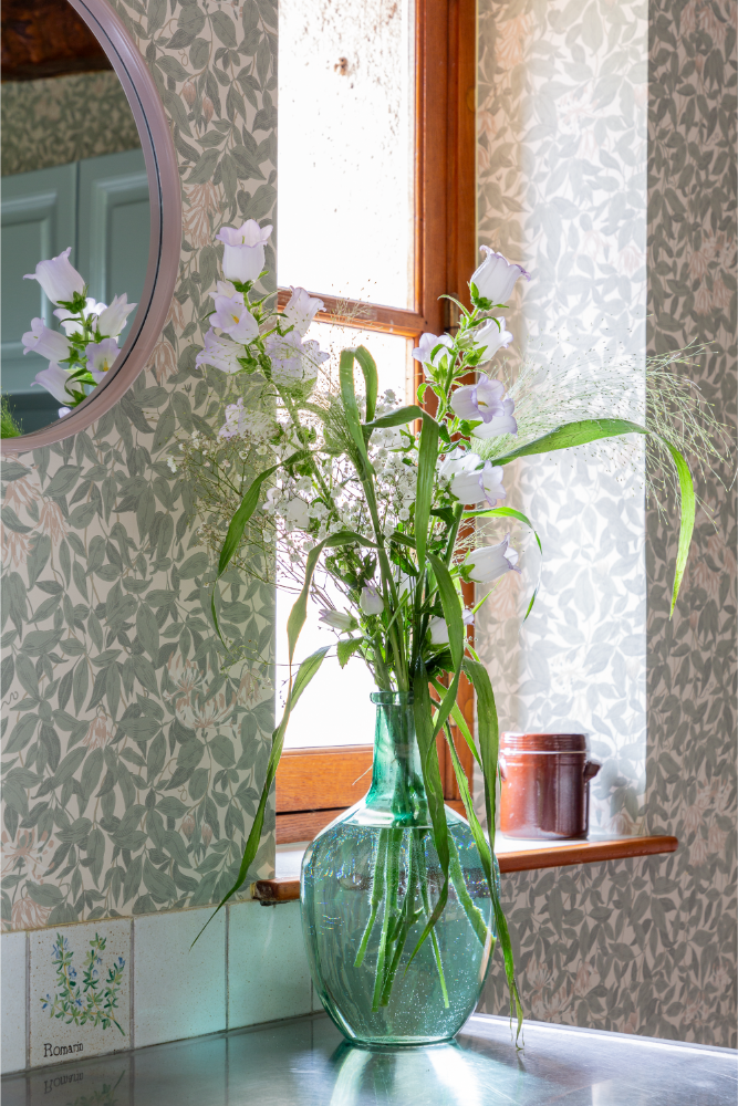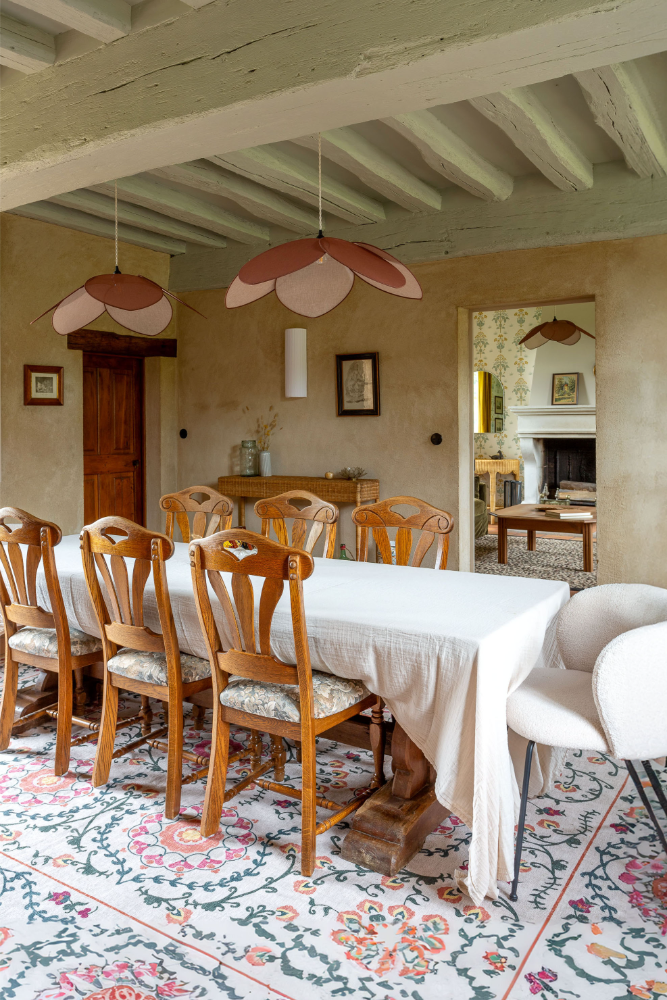 En quelques mois, la maison a été entièrement repensée, avec des inspirations venues de l’univers cottage anglais et de l’abbaye des Vaux-de-Cernay. Les sols, les couleurs et les papiers peints ont été choisis pour apporter authenticité et douceur. Du mobilier chiné a été ajouté pour renforcer l’esprit campagne et donner une vraie identité au lieu.